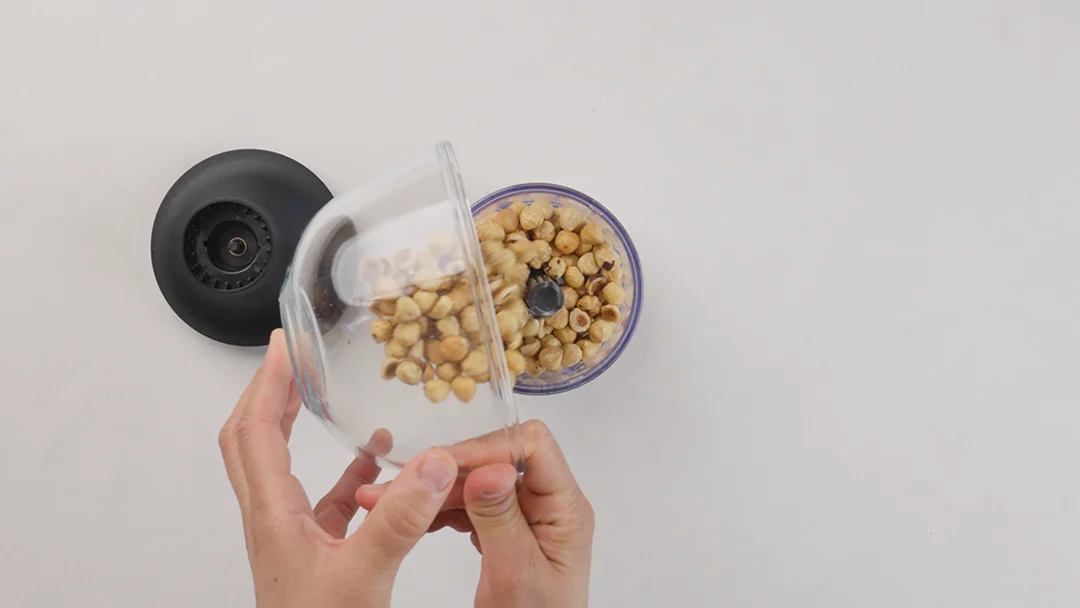 Heize den Ofen auf 160 °C vor. Röst die Haselnüsse, bis sie goldbraun sind. Zermahle die Haselnüsse dann in einer Küchenmaschine zu einer glatten Paste.