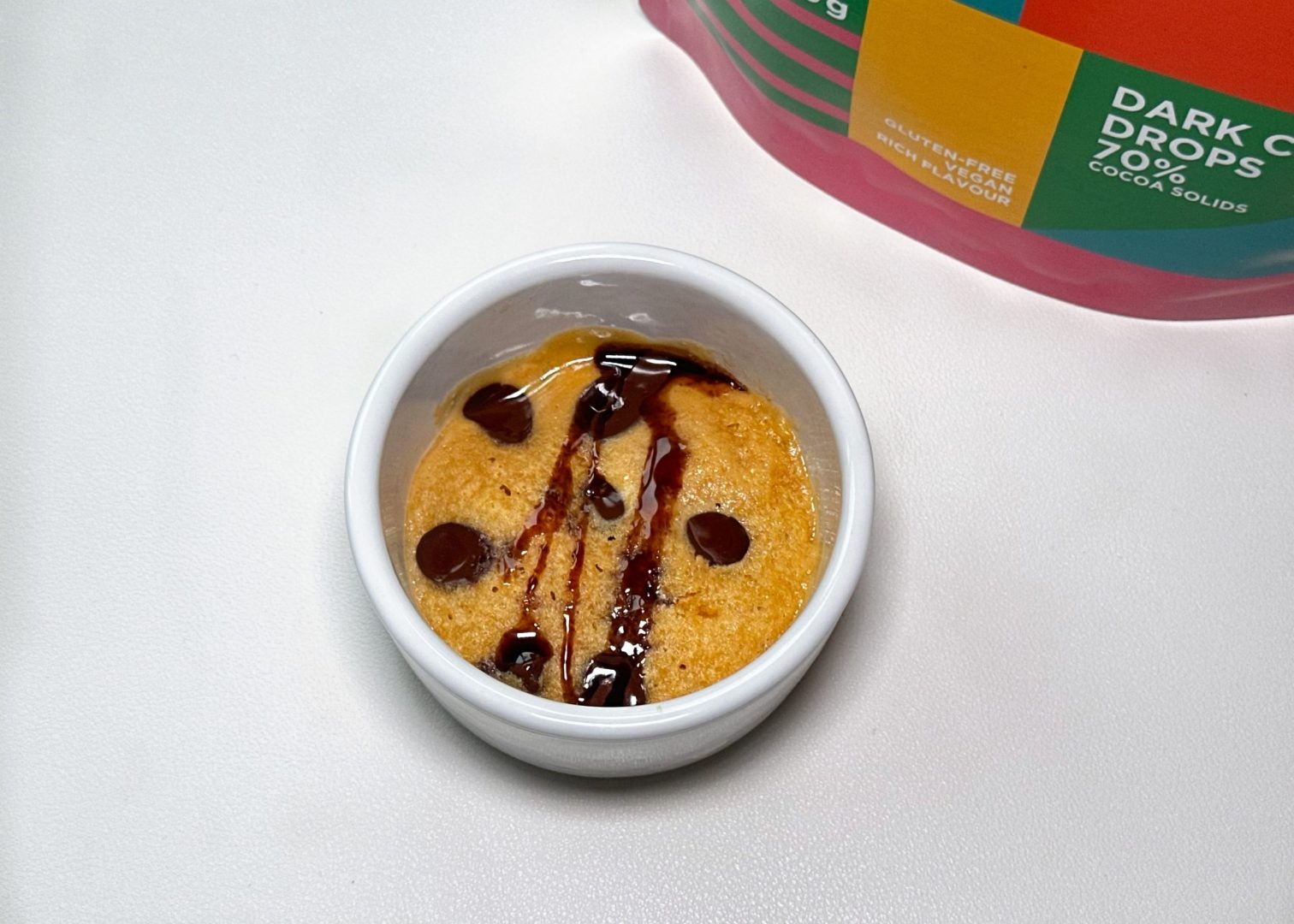 Gönne dir einen schnellen und leckeren Cookie-Cup mit Schokoladenstückchen, perfekt für ein kleines Dessert, das in wenigen Minuten fertig ist.
