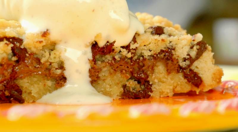 Diese reichhaltige Schokoladen-Cookie-Torte kombiniert einen buttrigen, krümeligen Teig mit einer cremigen Schokoladencreme in der Mitte. Perfekt gebacken ist sie das ultimative Dessert, das warm mit einer Kugel Vanilleeis serviert wird. Ein köstlicher Genuss, der jeden Schokoladenliebhaber zufriedenstellen wird!