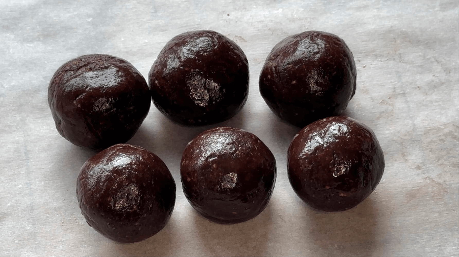 Nimm eine kleine Handvoll des vorbereiteten Teigs und forme daraus mit den Händen kleine Trüffelkugeln.
