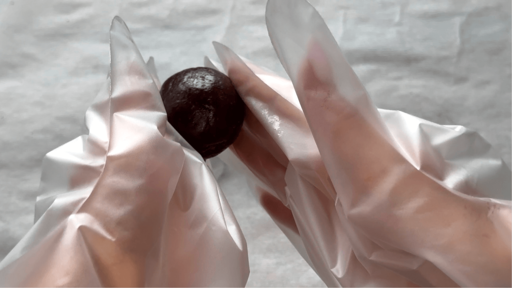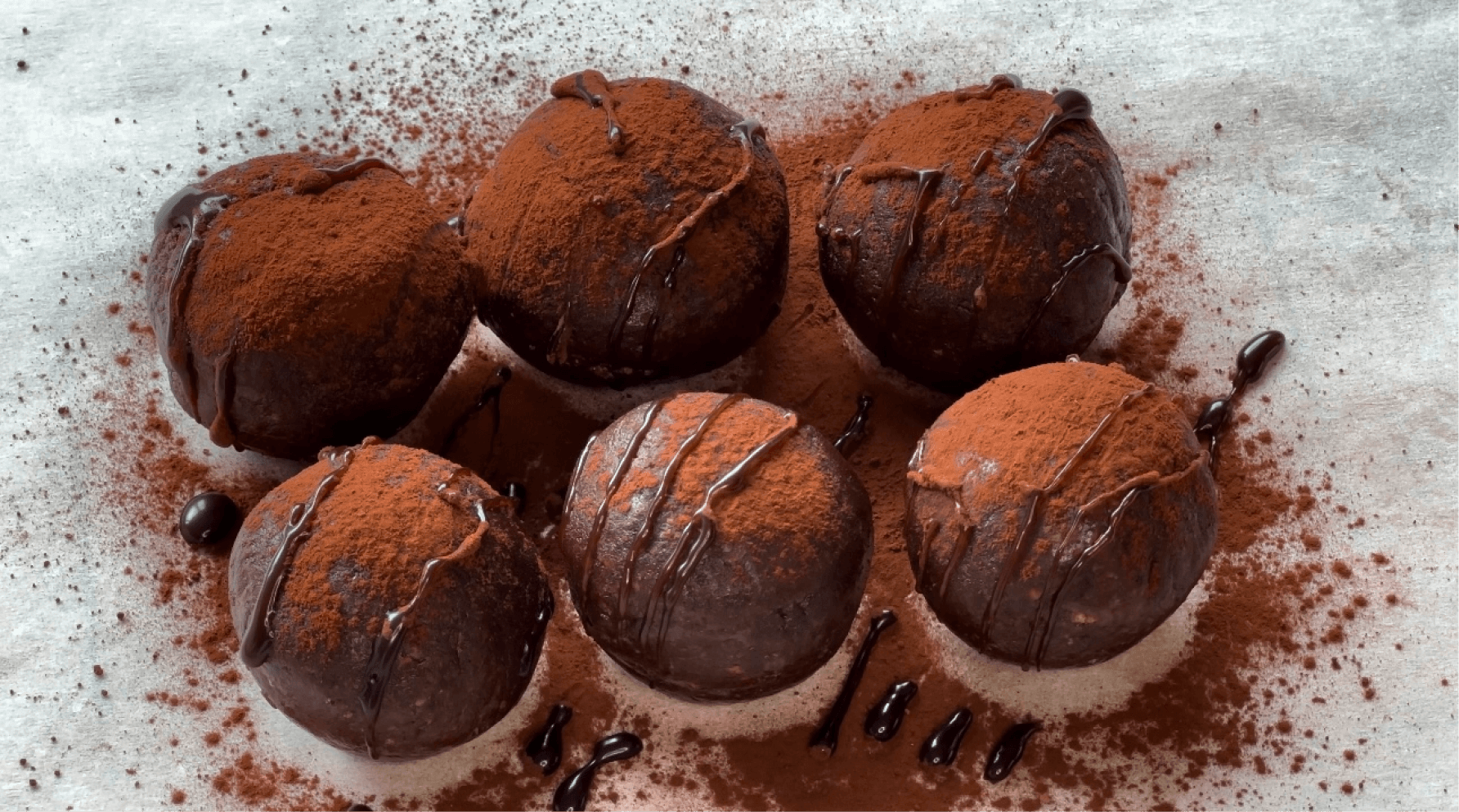 Wälze jede Trüffel in extra Kakaopulver, um sie zu überziehen. Lege die Trüffeln auf einen Teller oder ein Tablett. .png?x81849)