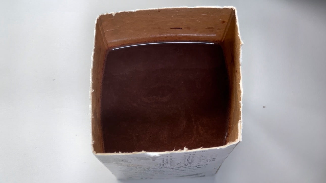 Nimm den Topf vom Herd. Gieße die Schokoladengelee-Mischung in leere Milchbecher oder Formen deiner Wahl. Fülle sie bis zur gewünschten Höhe.Kühlen