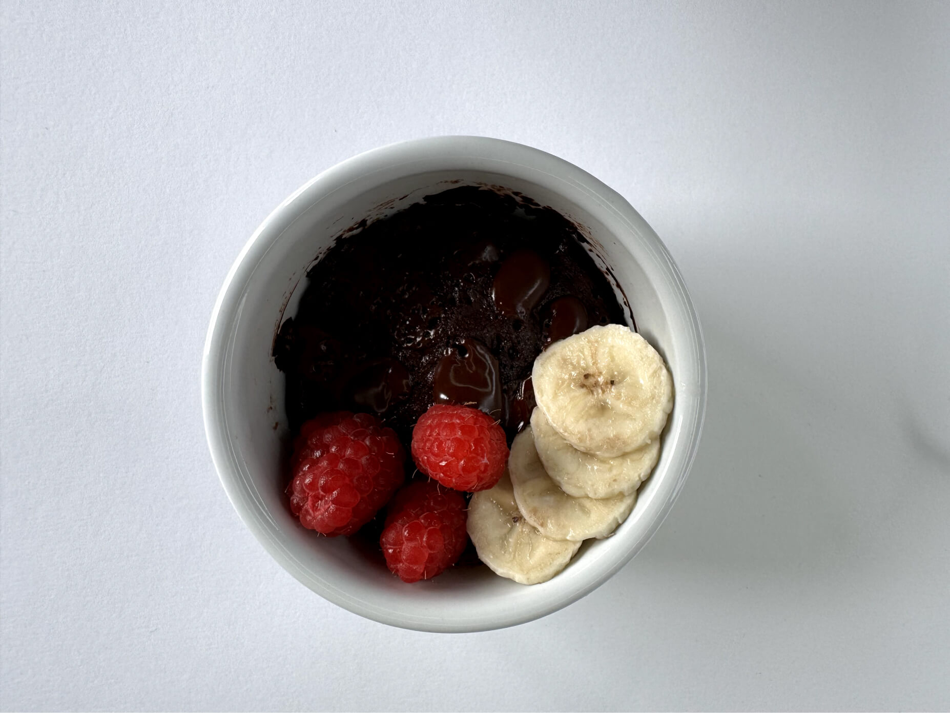 Laissez le gâteau refroidir pendant quelques minutes avant de le déguster. Vous pouvez le savourer directement dans la tasse ou le démouler sur une assiette si vous le souhaitez. Profitez de votre délicieux chocolat rapide !