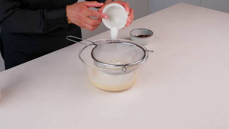 Meng de bloem, maïzena, bakpoeder en zout in een middelgrote kom.