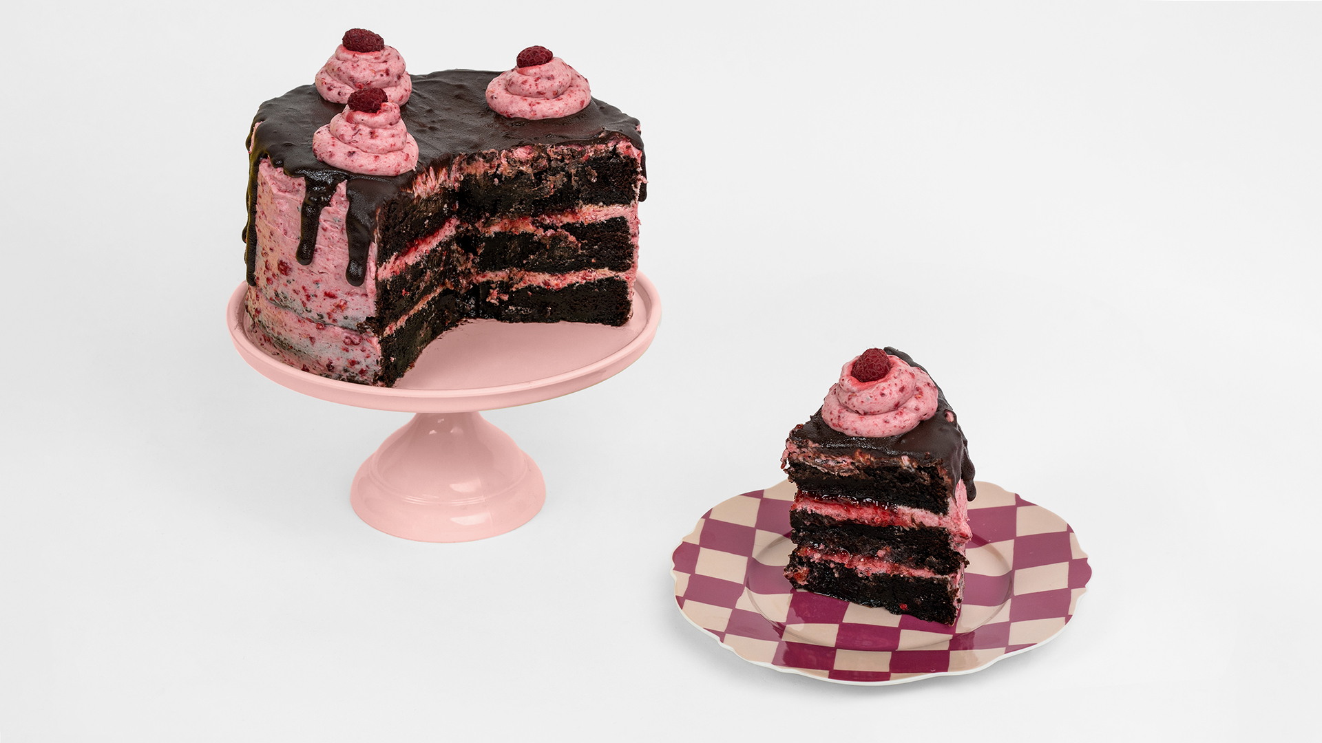 Een speciaal recept voor een speciale gelegenheid! Een puur genot voor chocolade- en frambozenliefhebbers. Een smeuïge, frisse en fruitige cake met een rijke pure chocoladeganache, licht zuur door de frambozen.