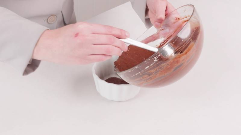 Smelt de pure chocolade au bain-marie of in de magnetron. Als je de magnetron gebruikt, roer de chocolade regelmatig om te voorkomen dat deze aanbrandt.