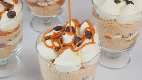 Serveer en geniet van deze heerlijke banoffee desserts in glazen als een verrukkelijke traktatie voor iedere gelegenheid!