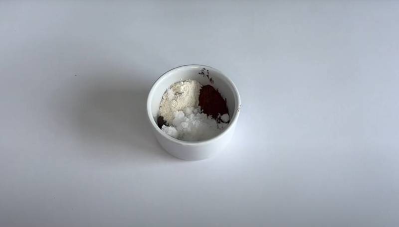 Add the all-purpose flour, granulated sugar, cocoa powder, and baking powder to a microwaveable coffee mug. Mix well to ensure even distribution.