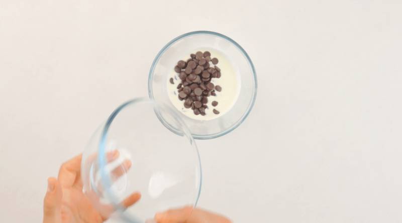 Mix the cream and chocolate drops together, melting it until smooth.