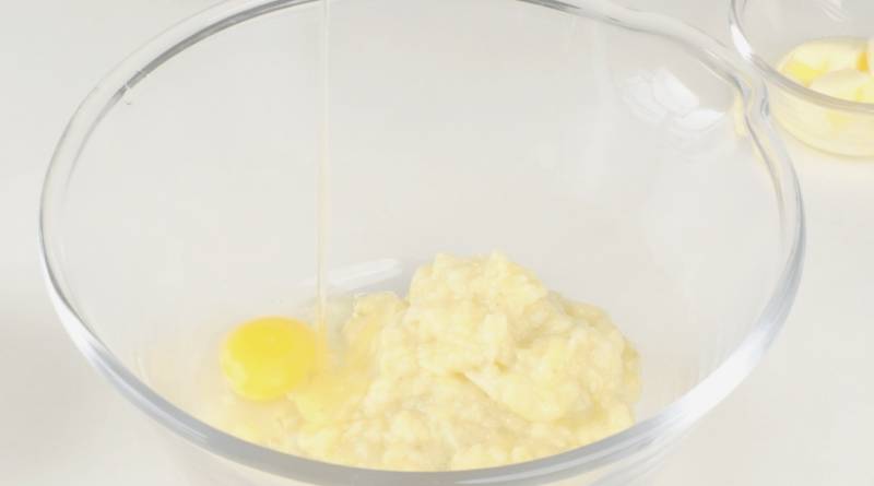 In a large bowl, combine the mashed bananas, eggs, milk, vegetable oil, sugar, butter, and vanilla extract. Beat thoroughly until well combined.