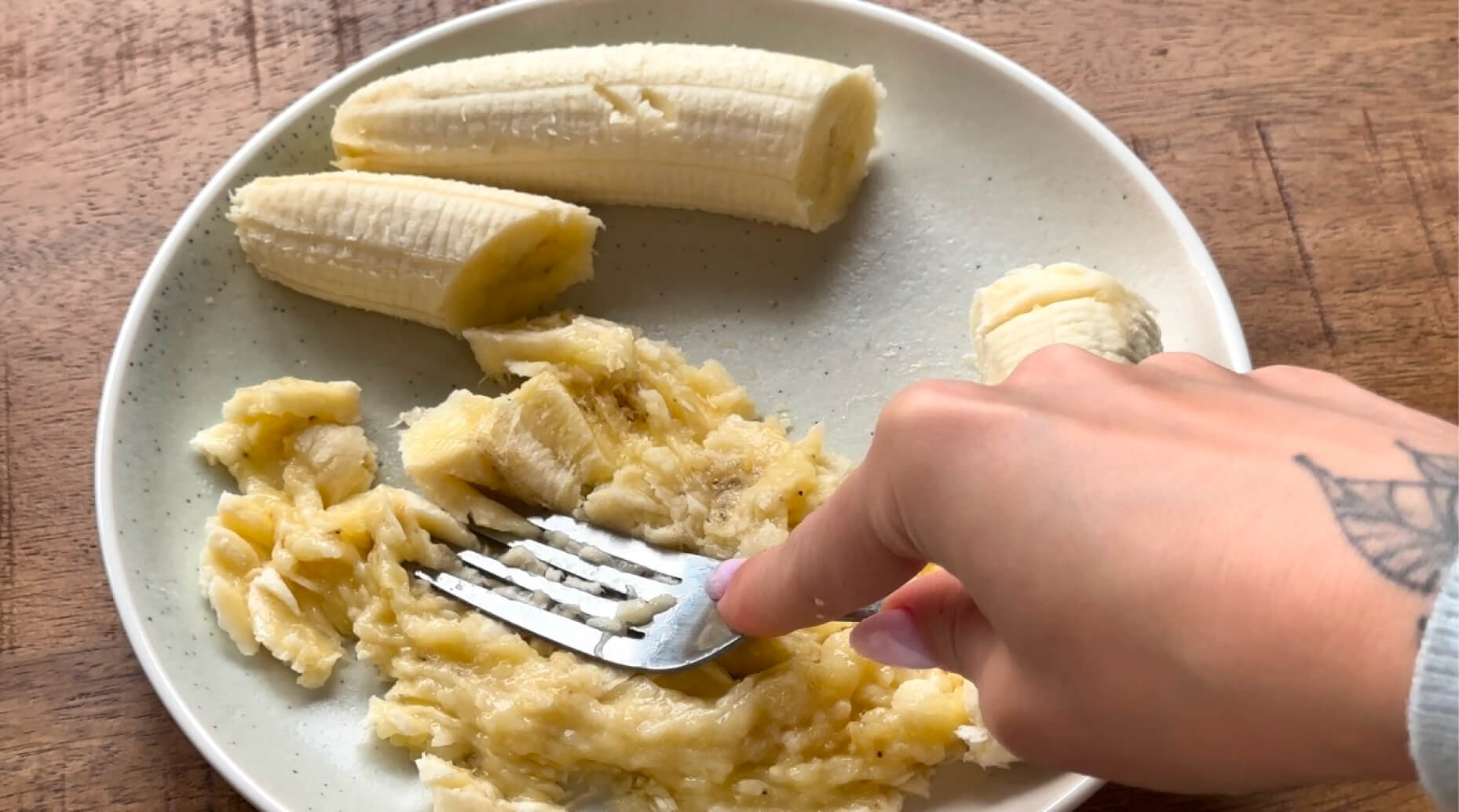Add the mashed bananas to the oat mixture. Mix well until all ingredients are fully incorporated and the mixture is uniform.