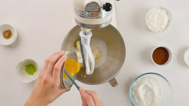 Beat butter, sugar, lime zest, vanilla, and salt until creamy. Mix in the egg yolks. Add cocoa powder, flour, corn flour, and baking powder. Knead into a cohesive dough, wrap in plastic, and chill for at least 1 hour.