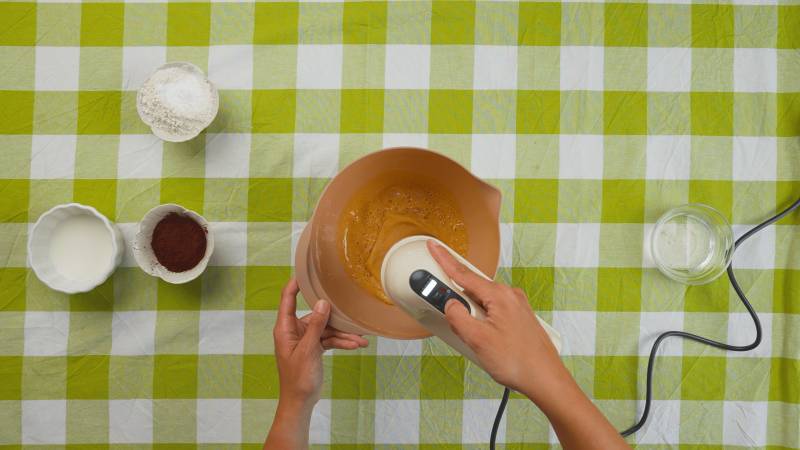 In a bowl, beat the eggs together with the light caster sugar, vanilla paste, and salt until well combined. Add the coconut oil and milk, and mix again. Sift in the cocoa powder, flour, and baking powder, and mix until the batter is smooth.