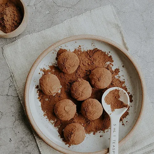 Place cocoa powder on a deep plate. Roll each energy ball in the cocoa powder until evenly coated. For best results, refrigerate the energy balls before serving. Chilling helps them firm up and enhances their texture.