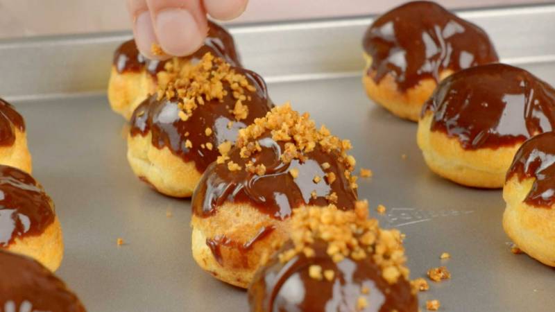 Absolutely delicious! Light, creamy, and covered in rich chocolate with a nutty crunch. These profiteroles are pure bliss