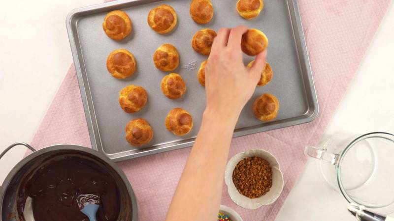 Bake in the preheated oven for 20–25 minutes, or until golden brown. Let the profiteroles cool completely before filling or glazing.