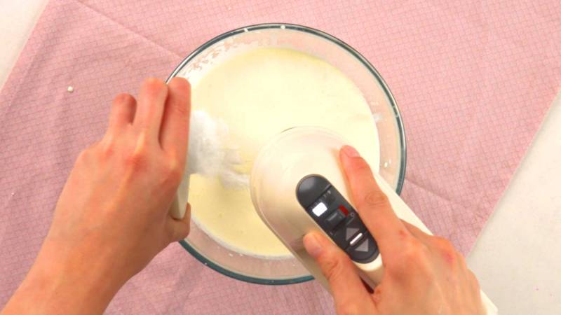 Beat the whipped cream with the sugar (and whipped cream stiffener, if using) until stiff. Transfer to a piping bag with a small smooth nozzle.