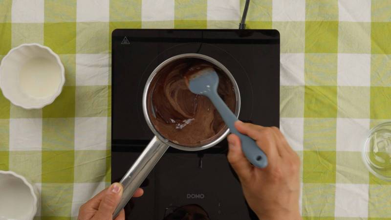 In a small saucepan, heat the heavy cream on low, keeping a close eye on it to prevent boiling. Once it begins to simmer, immediately pour the cream over the chocolate drops. Let it sit for 1 minute, then vigorously stir with a spatula until fully incorporated. Add the butter and mix until smooth. Place the mixture in the fridge to cool and firm up for 1-2 hours before piping.