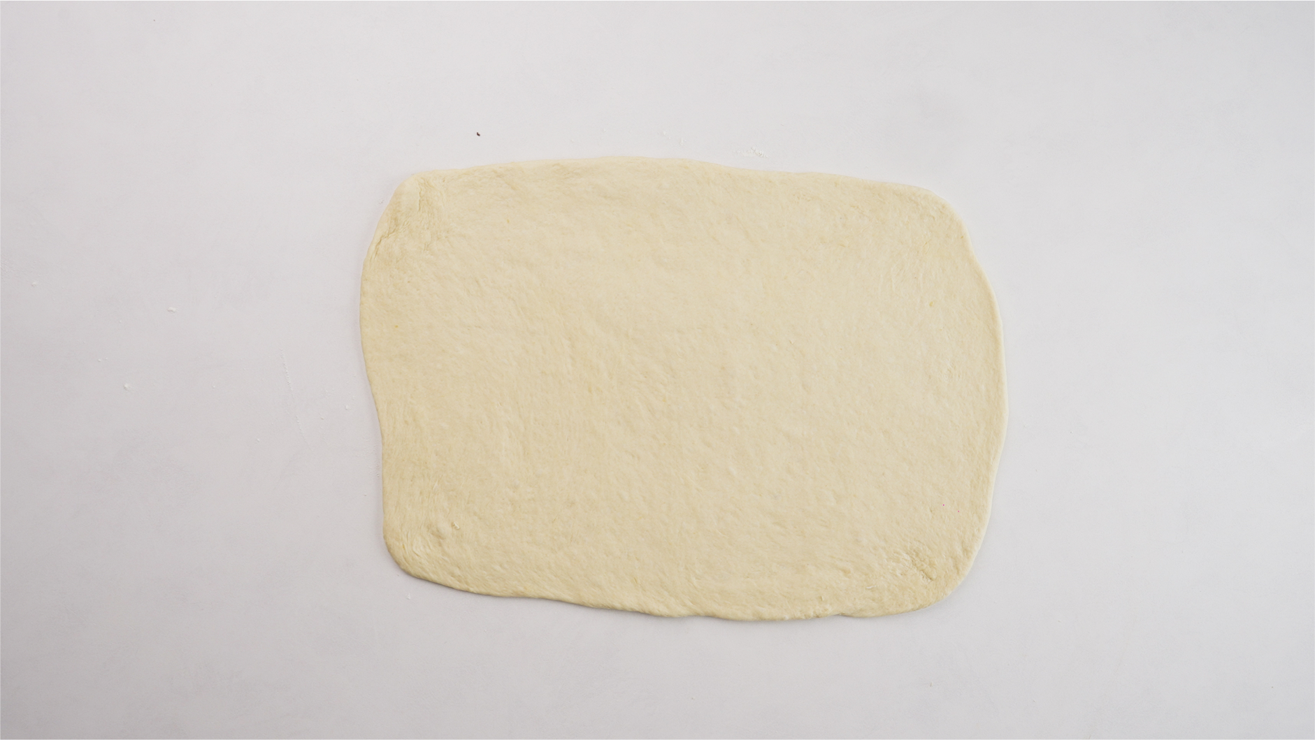 Roll the dough out into a large rectangle, about 1 cm thick. Use a bench scraper or spatula to fix the corners, ensuring they are sharp and even.