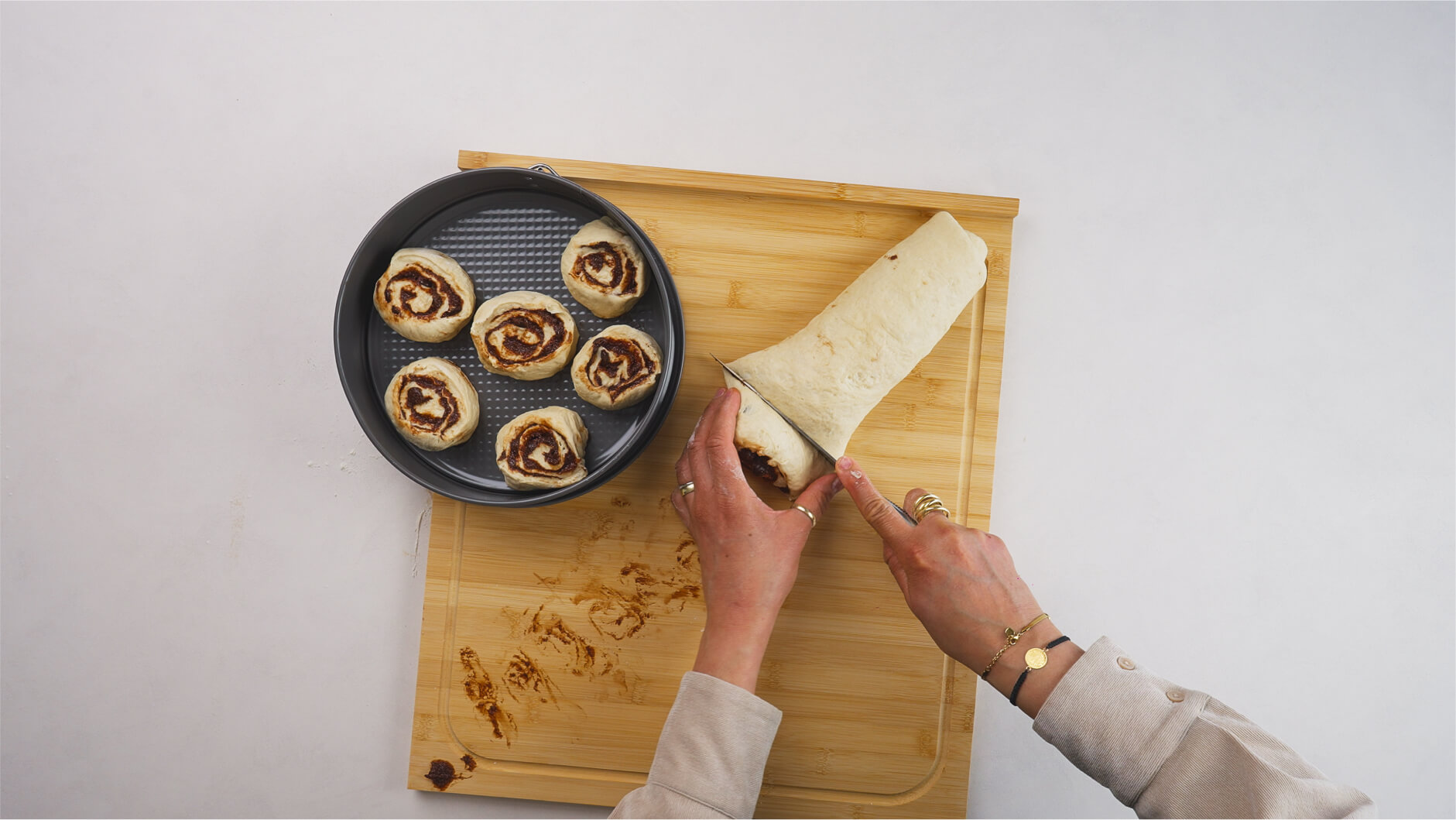 4. Cutting the Cinnamon Rolls