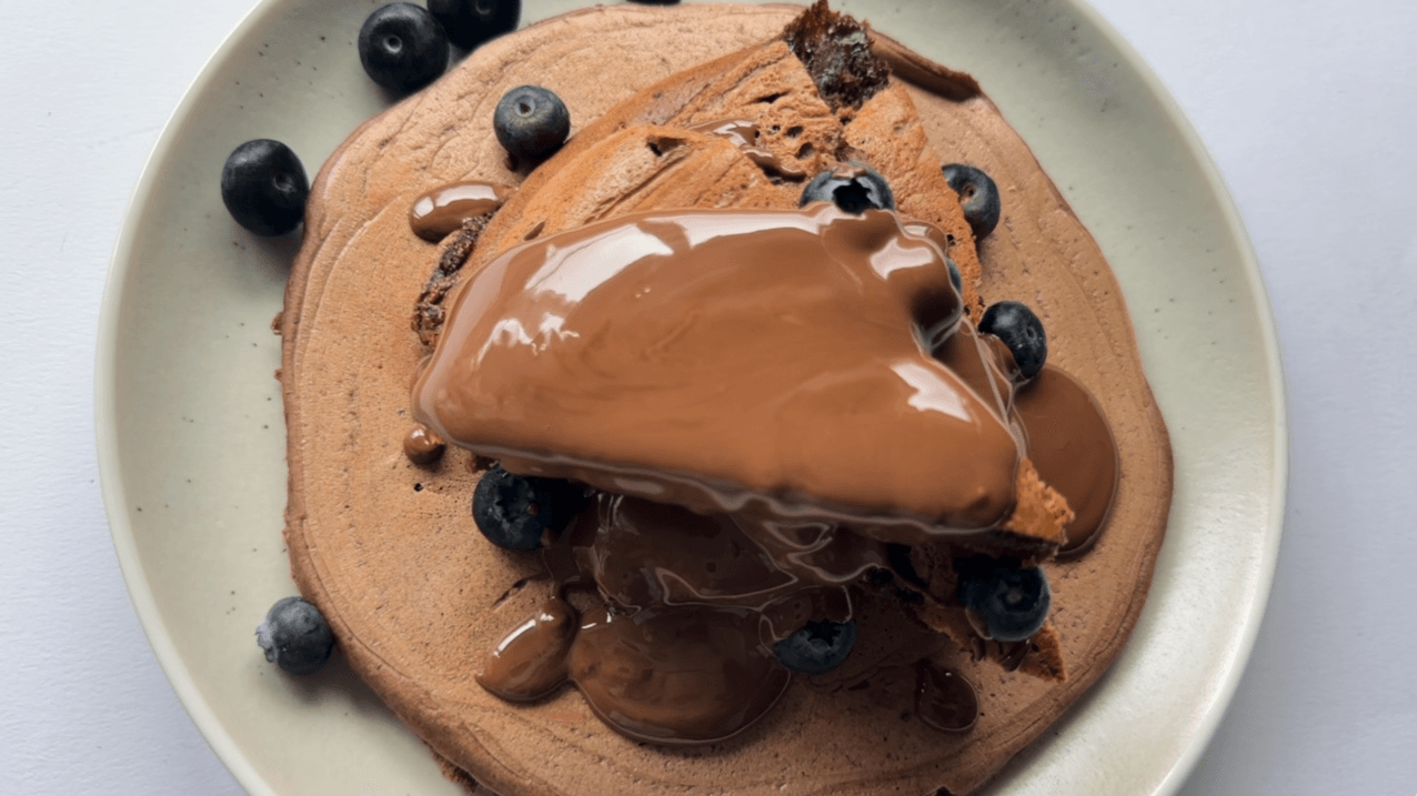 Fluffy cocoa pancakes with a gooey Nutella center, perfectly indulgent for breakfast or brunch!
