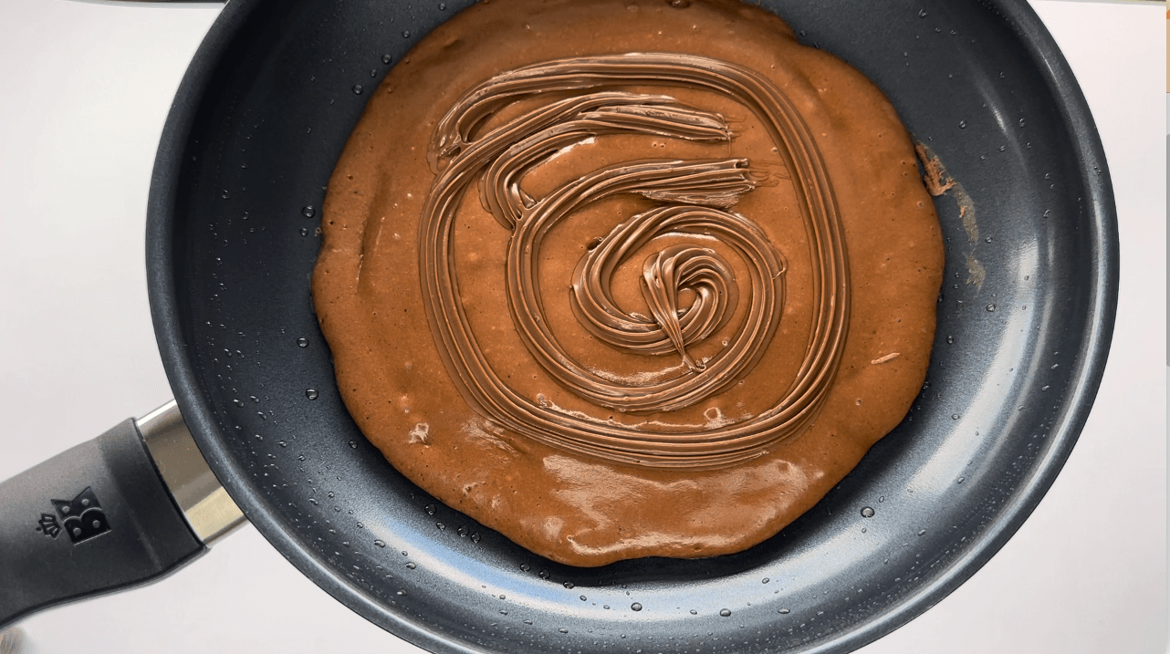 Spoon a dollop of Nutella onto the batter. Cover the Nutella with more pancake batter, ensuring it is completely covered. Cover with the lid and continue cooking until bubbles form on the surface and the edges look set.
