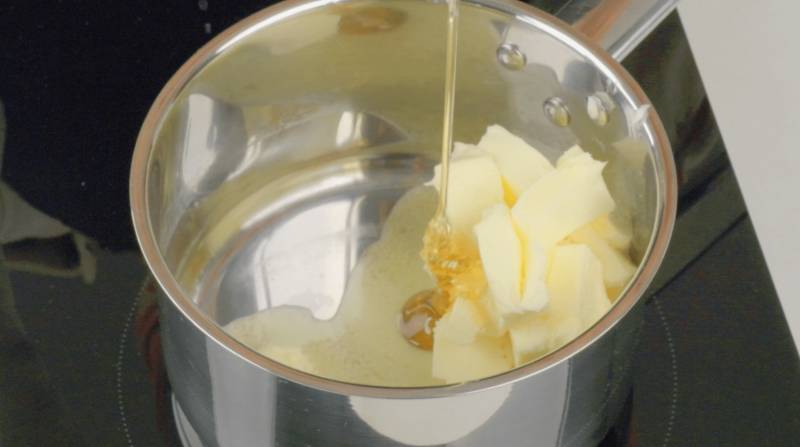 In a medium-sized pan, melt the butter and honey (or syrup) over low heat until fully combined.