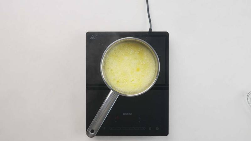 In a saucepan over medium heat, combine water and granulated sugar. Cook until the mixture turns light in color. After you see the desired color, add the cream and butter to the saucepan. Stir until the mixture is smooth and well combined.