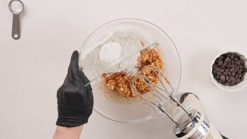 Gradually add the dry ingredients to the wet mixture, mixing until just combined. Avoid overmixing, as it can lead to tough cookies.