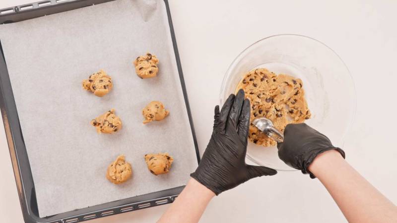 Using a cookie scoop or spoon, portion out the cookie dough and roll it into balls. Place them onto the prepared baking sheets, leaving space between each for spreading.