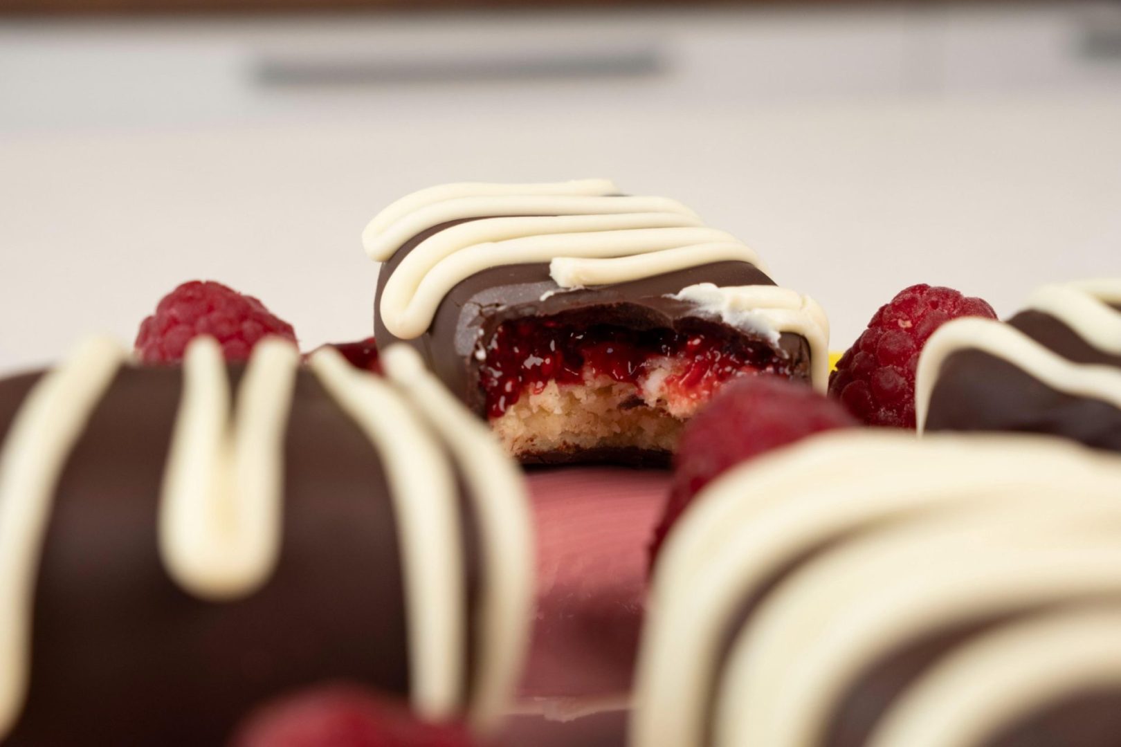 Sweet, coconutty with a fruity raspberry twist. Perfect for a light, indulgent snack.