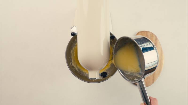 Remove the vanilla pod from the cream. Beat the butter until fluffy using a hand mixer with whisk attachments. Gradually add the vanilla cream and continue beating. The mixture should ultimately be easy to pipe. If it is too thin, place it in the refrigerator for 10-15 minutes and then continue beating. If the mixture has curdled, briefly heat the bowl in a bain-marie or with a hairdryer and then continue beating.